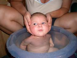 Was ich in der ersten Zeit auch ganz toll fand, war mein Badeeimer, da hab ich immer gerne dringesessen. Überhaupt finde ich baden total klasse!